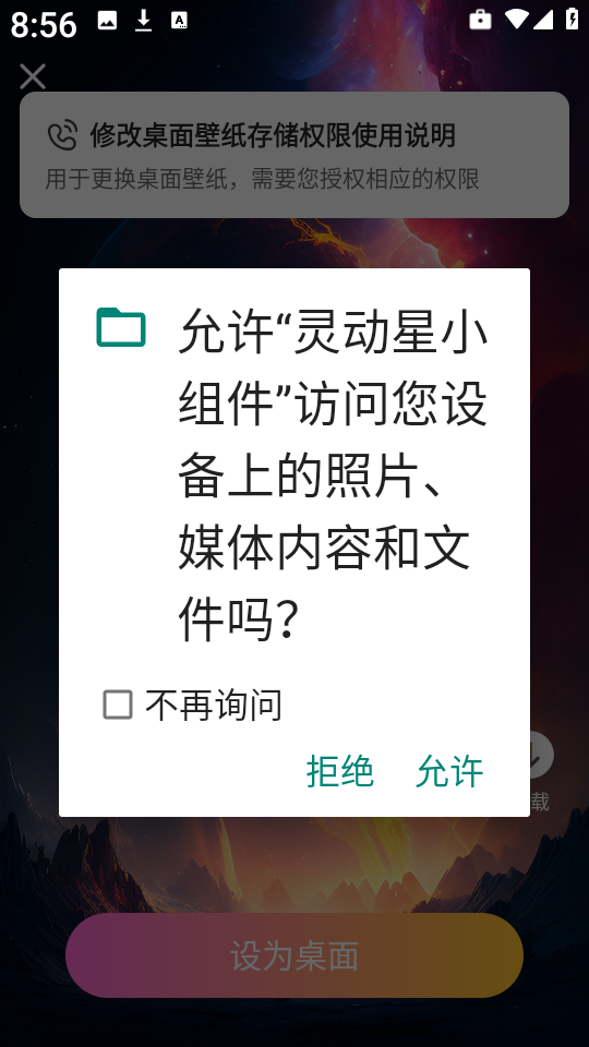 4、首次使用下载功能时,需开启对应权限,才能让壁纸正常保存至设备;
