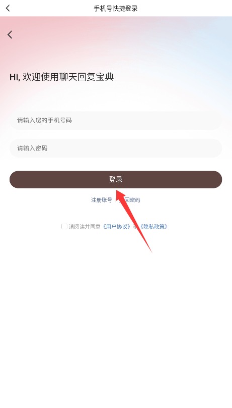 2、输入注册手机号和对应密码,勾选同意协议后点击登录按钮完成账号认证。