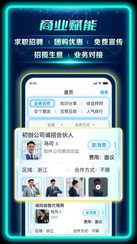 主要包含企业和实体店的求职招聘、兼职招聘、活动宣传、团购优惠、招揽客户、业务对接、项目合作、资源介绍,帮助企业和实体店快速提升业绩和利润