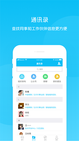 3、通讯录:查找同事和工作伙伴信息更方便