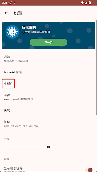 3、点击小部件选项进行添加