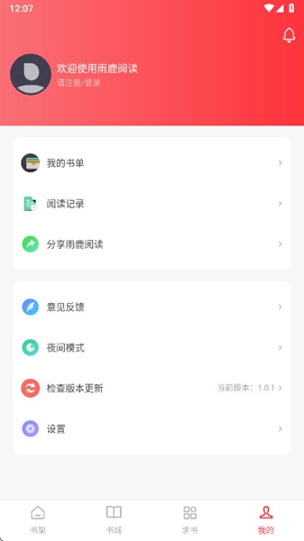 我的:账户管理、阅读设置、下载管理、历史记录等功能入口。