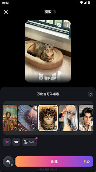 提供大量分类明确的热门模板,覆盖节日、潮流、搞笑、大片等主题,用户可一键生成同款爆款视频。
