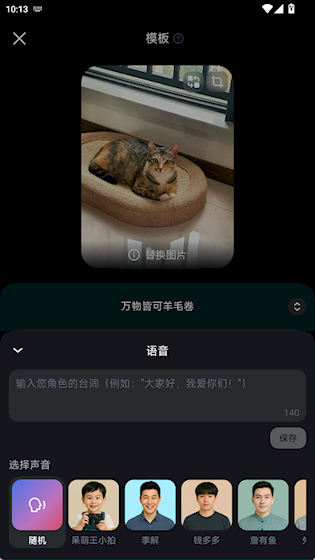 上传任意静态图片,应用可自动为其添加自然的动作与表情,使人物或角色“活”起来,适用于人像、动漫、宠物等多种素材类型。