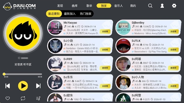 DJUU车机版官方版是专为车机打造的版本,让大家在车上就可以享受海量的DJ音乐。针对车机系统深度优化,界面简洁清爽,彻底去除广告与复杂操作,实现上车即播的高效体验。应用支持智能断点续播功能,车辆熄火后自动记录播放位置,再次启动时无缝接续,无需手动查找。