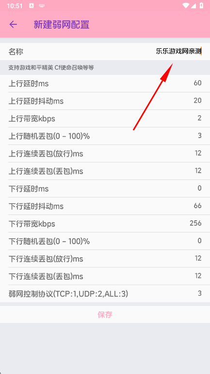 3、允许新建弱网配置并自定义名称,方便在不同场景下快速切换对应参数。