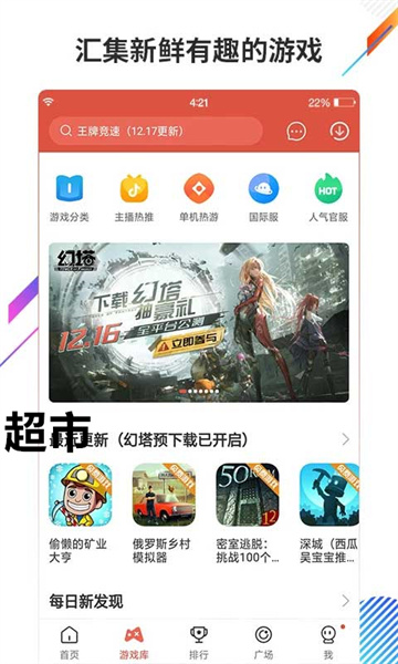 1、玩家能够在这里下载各式各样的手机游戏,也能在这领取大量的手游礼包提升实力。