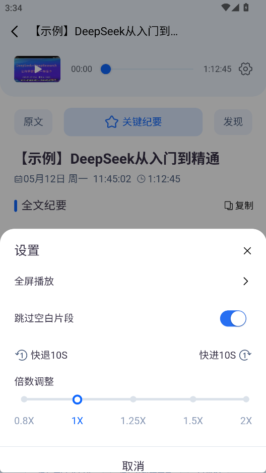 3、点击齿轮按钮能调整播放音频的倍数