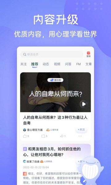 在壹心理,你将不再是孤岛。这里有2000万人在线讨论的问答社区,说出你的烦与难,一定有人感同身受。