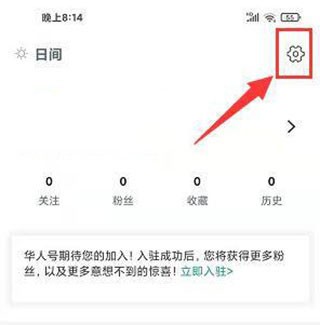 2、在“我的”界面中,找到右上角的设置选项,单击进入设置页面。