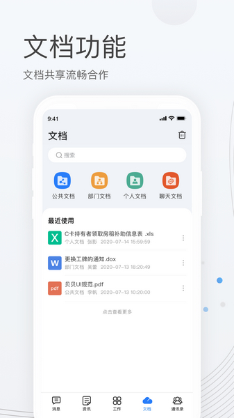 优化文档、个人中心、空间、导航、资讯、交流、视频会议等功能,提升用户体验。