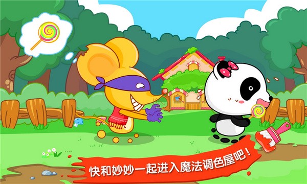 快来魔法调色屋帮助熊猫妙妙吧。