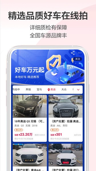 来自法院、公安、银行等特殊渠道资产,远低于市场价起拍,不限购可贷款法拍房、1元起拍无保留价有鉴定证书汽车,公安刑事罚没资产1元起拍等。官方保真假一赔三,阿里实力平台保障。