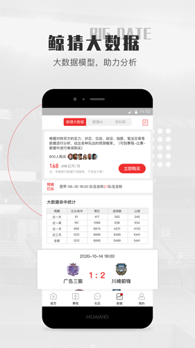 鲸猜大数据:根据球队实力、状态、走势等多维度计算,提供大数据模型。