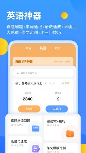 内置政治、英语、数学及专业课等科目的题库,支持按章节或题型练习,帮助用户巩固知识点并检测学习效果。