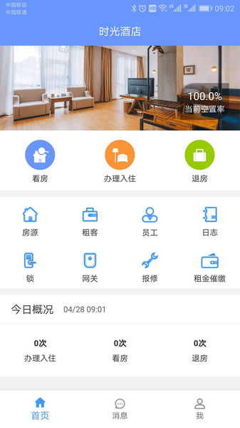 根据对应的概况时间,对酒店一天办理入住、看房、退房等信息进行统计