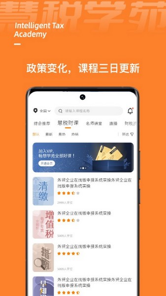 慧税学苑聚焦实时财税热点,依照实时更新的财税政策信息制作课程,为您提供及时、准确的财税处理方案,距离政策更近一步!
