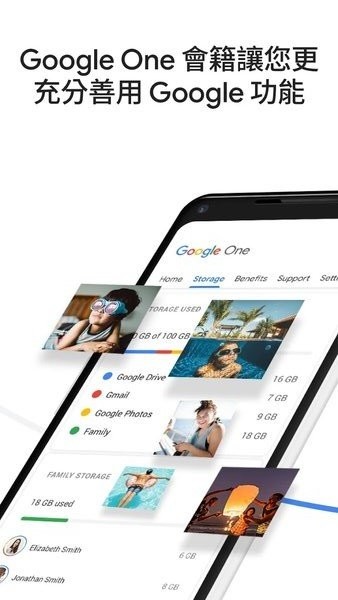 无论您需要一点存储空间还是很多存储空间,都有一个地方安全保存您的照片、文件等。这些都会备份在 Google One 提供的云端空间内。