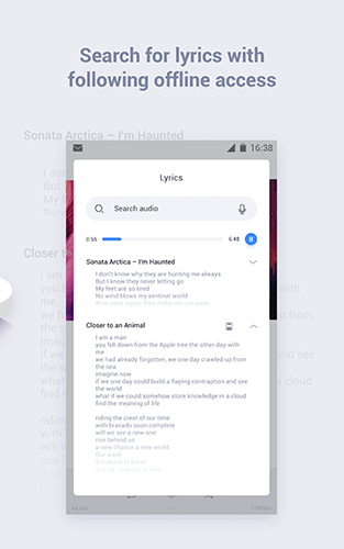 – Stellio Player的歌词。查看来自互联网的歌词,之后可以离线访问。
