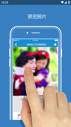 照片编辑美化:内置迪士尼主题边框、贴纸等素材,可自定义添加趣味元素,打造专属纪念照。
