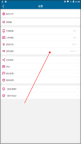 2、在设置页面中,找到“音色选择”选项,点击该选项进入音色挑选界面。