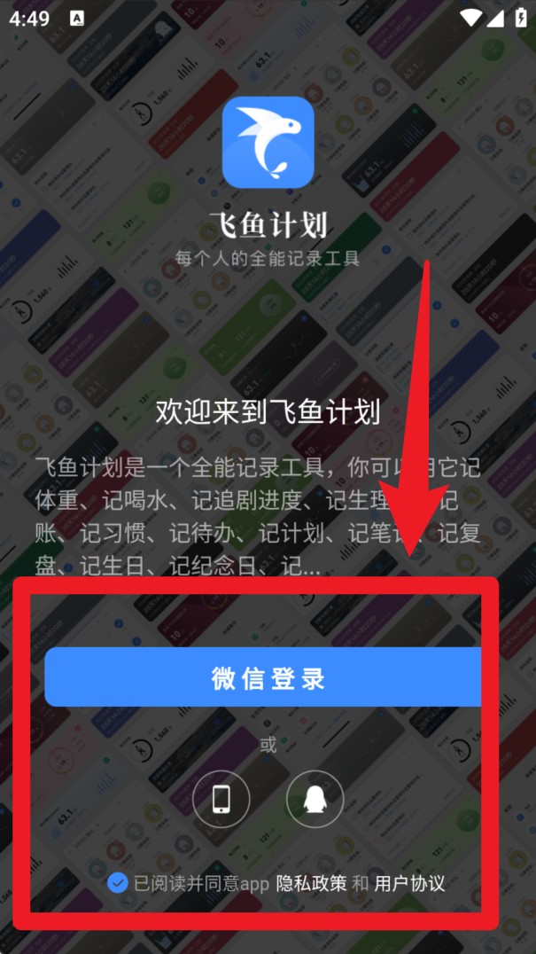 1. 打开App后,点击微信登录按钮进入首页,确保已勾选隐私协议与用户协议。