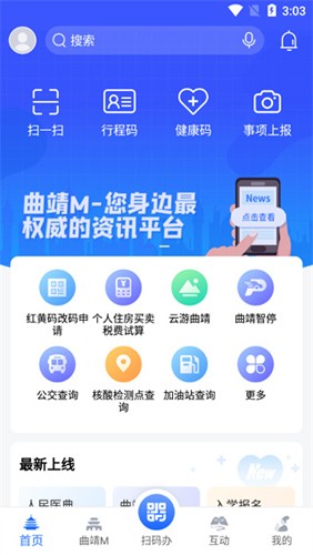 软件涵盖各种功能,房产服务、交通出行、政务办事、便民生活、医疗健康、文化休闲、互动资讯,多种便民服务,分类精准真正做到城市高频服务,科学的进行健康码的管理,帮助科学的防控疫情,做到快速转码清零。真正做到一端在手,应有尽有。同时,app还是一个非常好用的新闻软件,头条、视频等,来获取曲靖市最新的新闻资讯,以及国家政策等,让你足不出门就能了解各种大事。