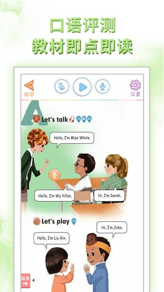 1、集点读机、英语复读机、学习机于一体,让手机变身为孩子学习小学英语小学语文的的好帮手,游戏与学习巧妙结合,让孩子爱上小学英语语文课程。