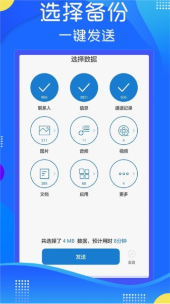 1, 一键换机:简单操作选择备份,一键发送零流量传输