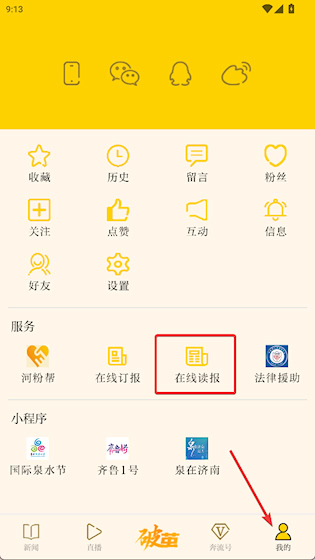 1、进入“我的”界面,点击在线读报