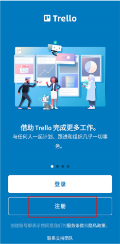 1、首先打开Trello,点击“注册”。