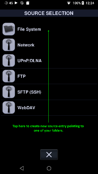 1、通过 Neutron 的设置 -> 媒体库或 Sources 访问 Source Selection,然后使用 [+] 打开 Sources Selection。点击文件系统。