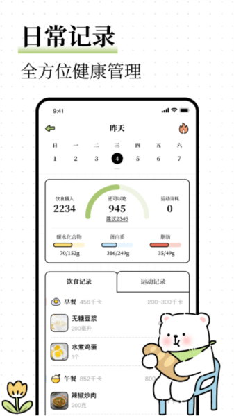 对自己的饮食数据进行记录,这样就可以保存每天的饮食数据了;