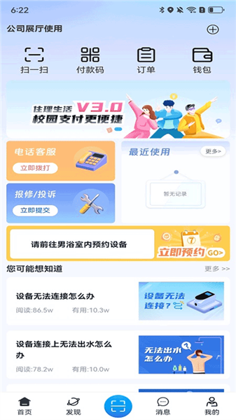 除了基本的用水管理外,住理生活APP还提供了校园跑腿服务预约、设备报修申请、失物招领等实用功能。这些功能极大地丰富了APP的使用场景,满足了用户的多样化需求。