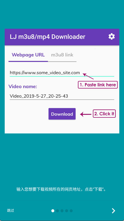 1、输入您想要下载视频所在的网页地址,点击下载。