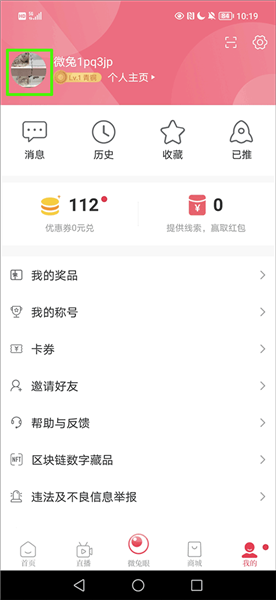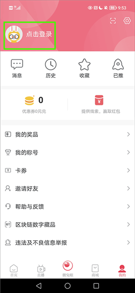 1、打开应用,在我的界面选择并点击头像位置的选项;