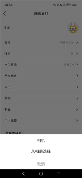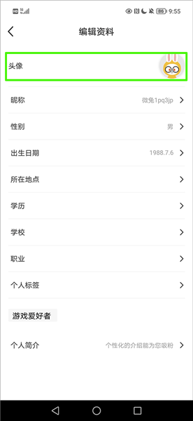 2、在编辑资料界面中选择并点击“头像”的选项;