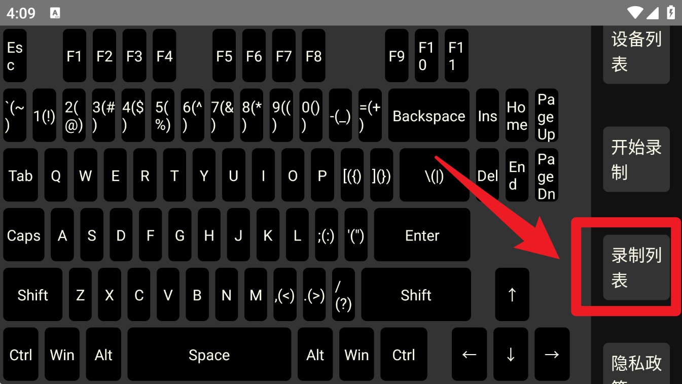 2. 主界面呈现仿真键盘布局,点击右侧开始录制按钮,即可记录当前输入操作,用于后续自动化播放指令。