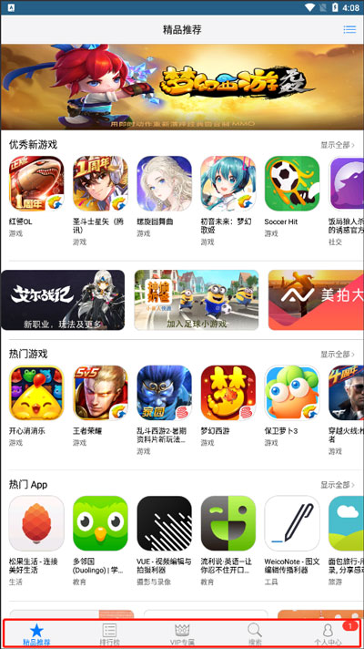 2、持续更新热门应用与游戏资源库,及时补充新品,可第一时间体验最新最火的应用产品。