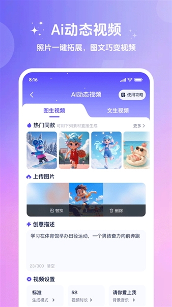 1、一键生成,多端适用:图片可直接生成动态短片,文字可快速变成视频脚本与画面,适用于种草、知识科普、剧情号、带货混剪等多种场景。