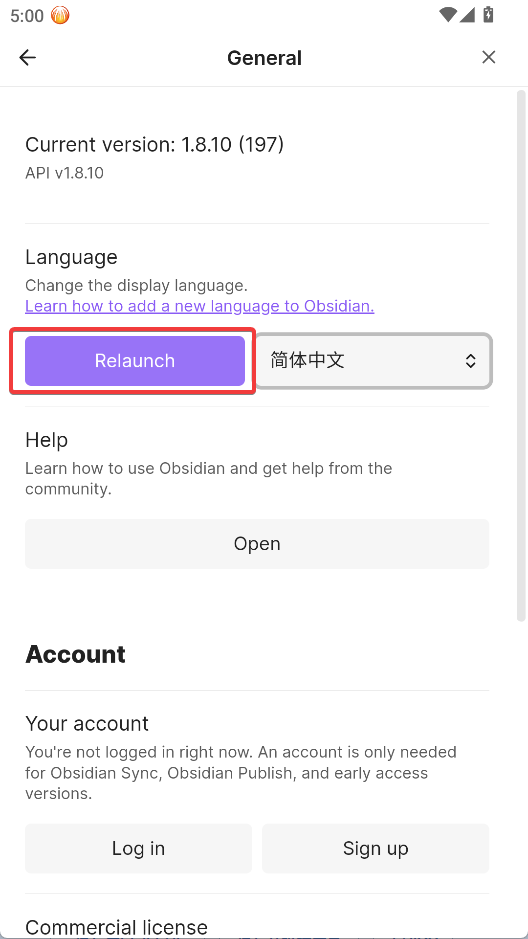6、点击“Re launch”重新加载界面即可显示中文