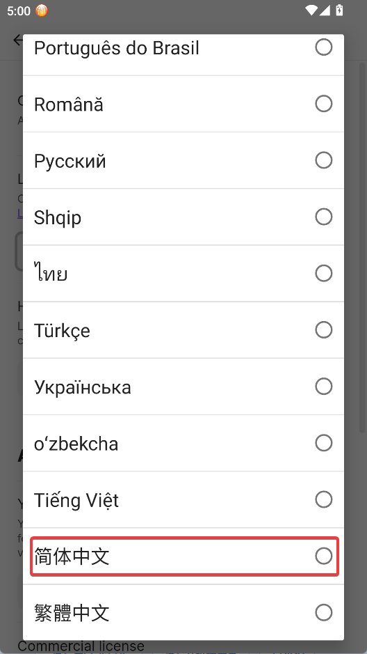 5、找到简体中文并点击
