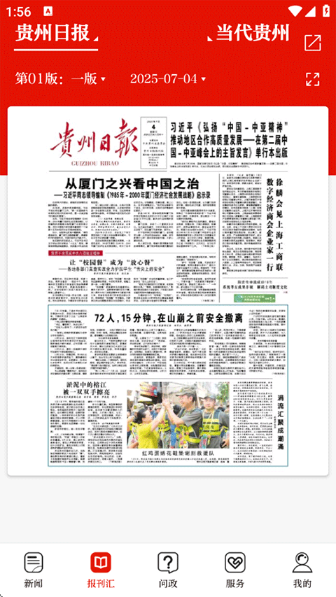 3、黔报汇聚 一端多报:集成省、市州党报电子版,可通过手机第一时间阅读心仪的地方党报。