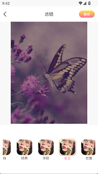 3、滤镜贴纸适量:提供几十款风格统一的滤镜和贴纸,有复古、胶片、清透等类型,启用后不会盖过人物本身,只是轻轻加点味道。
