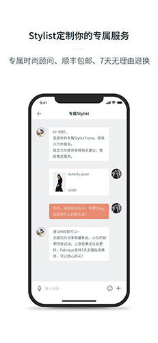 1、选择与专属时尚顾问聊天,可以及时咨询相应服装问题,支持发语音;
