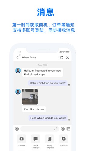实时接收并回复国际站买家发送的询盘商机。