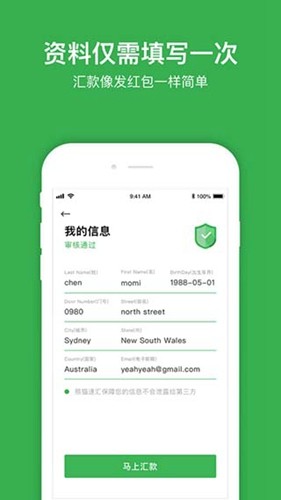 熊猫速汇是一款由杭州我汇网络技术有限公司发行的专门为全球华人打造的多功能手机在线汇款软件,该软件中是有很多的功能,是专门用于帮助用户通过app实现跨国汇款的,整个汇款过程只用几十秒,而且没有中间商,中间不需要任何手续费,简简单单的操作,而且安全可靠,能够让你快速的实现汇款自由,能够随时随地的进行汇款,是非常实在的汇款工具,是非常适合常年做跨国生意的用户使用。
