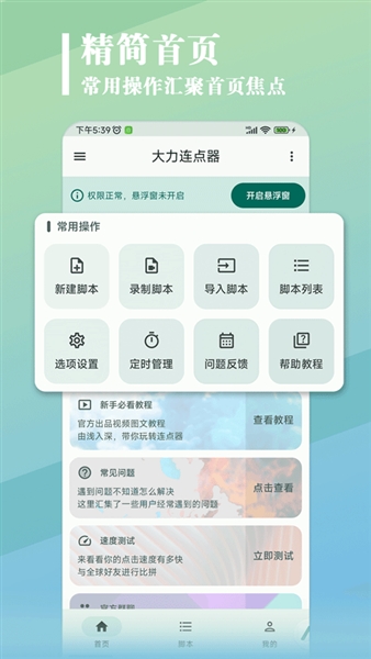 大力连点器app是一款专为安卓用户打造的智能辅助工具,它让繁琐的手动操作变得轻而易举。透过自定义脚本,用户可以个性化设置各种流程,无论是简单的重复执行还是复杂的便捷手势,都能轻松应对。这款全能的点击器,基于无障碍服务,配合创新的行为树流程控制,为用户提供了一站式的自动化解决方案。有需要的小伙伴就赶快下载体验吧!