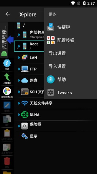 X-plore是双面板文件管理器,可以同时显示两个文件夹,快速实现常见的操作,如文件复制是从一个面板选中的文件\文件夹到另一个面板中选中的文件夹。