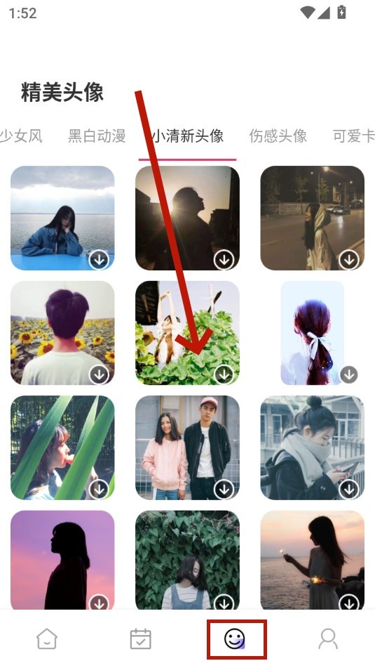 5、软件第三个板块是头像界面,找到心仪头像后,直接点击即可完成下载。
